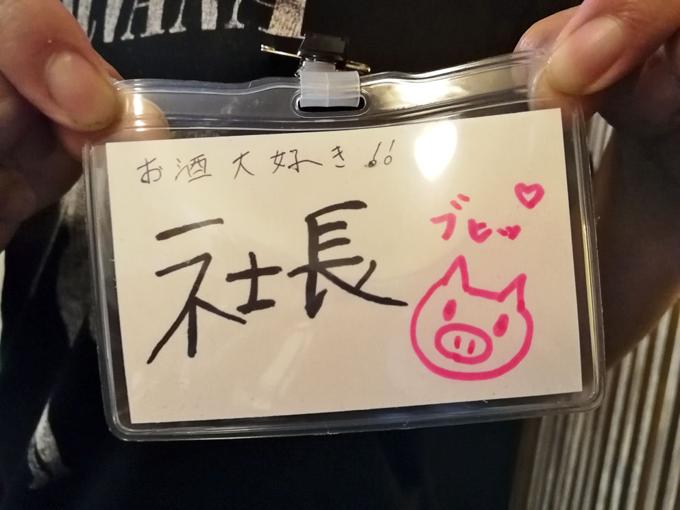 胸につけていたプレートを見ていただければどんな感じの方かわかると思います。プレートは少し”痛い”感じもありますが(失礼!)とても気さくな店主です。まぁ、無愛想にしているよりも100倍マシかなと思います。