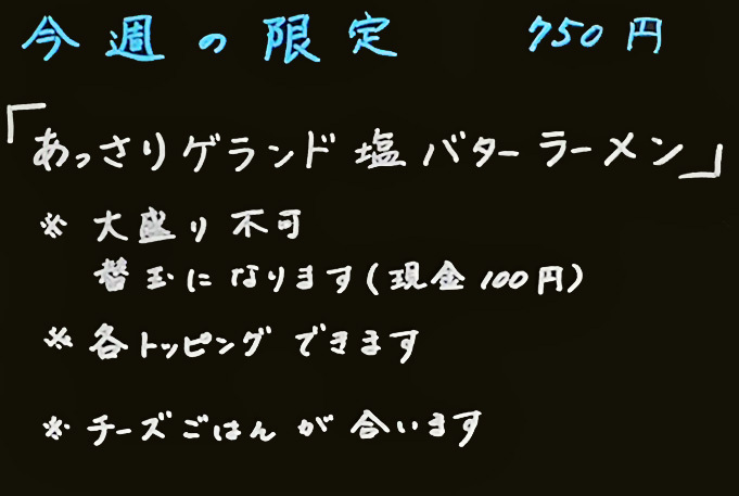 「あっさりグランド塩バターラーメン」750円