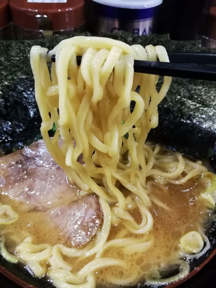 ラーメンは、チャーシュー、海苔、ホウレン草、ネギが乗っていて、オーソドックスな家系スタイルです。