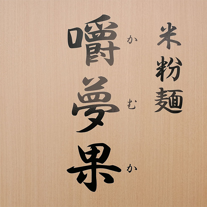 以前は店舗表記が「米粉厨 嚼夢果(こめこくりや かむか)」でしたが、”米粉厨”が”米粉麺”に変わっていました。