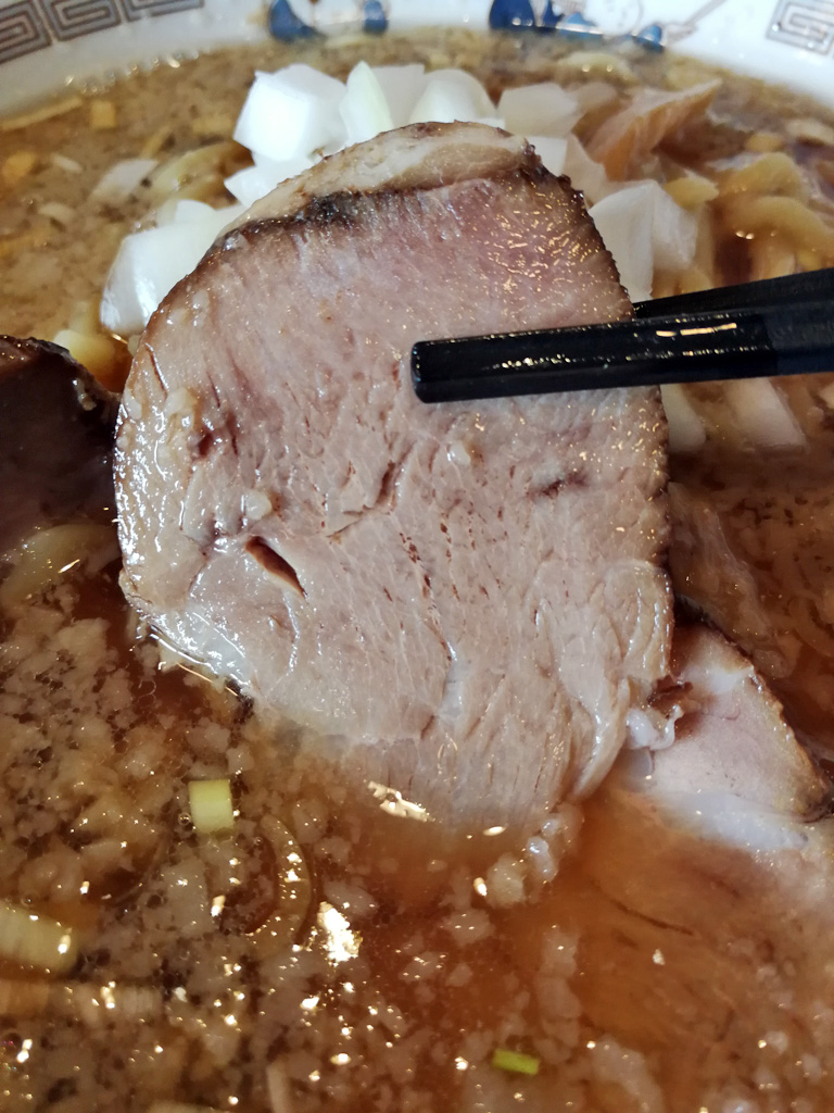チャーシューは店主の自信作だそうで、スープによく馴染む味付けがされており、確かに結構美味しいです♪
