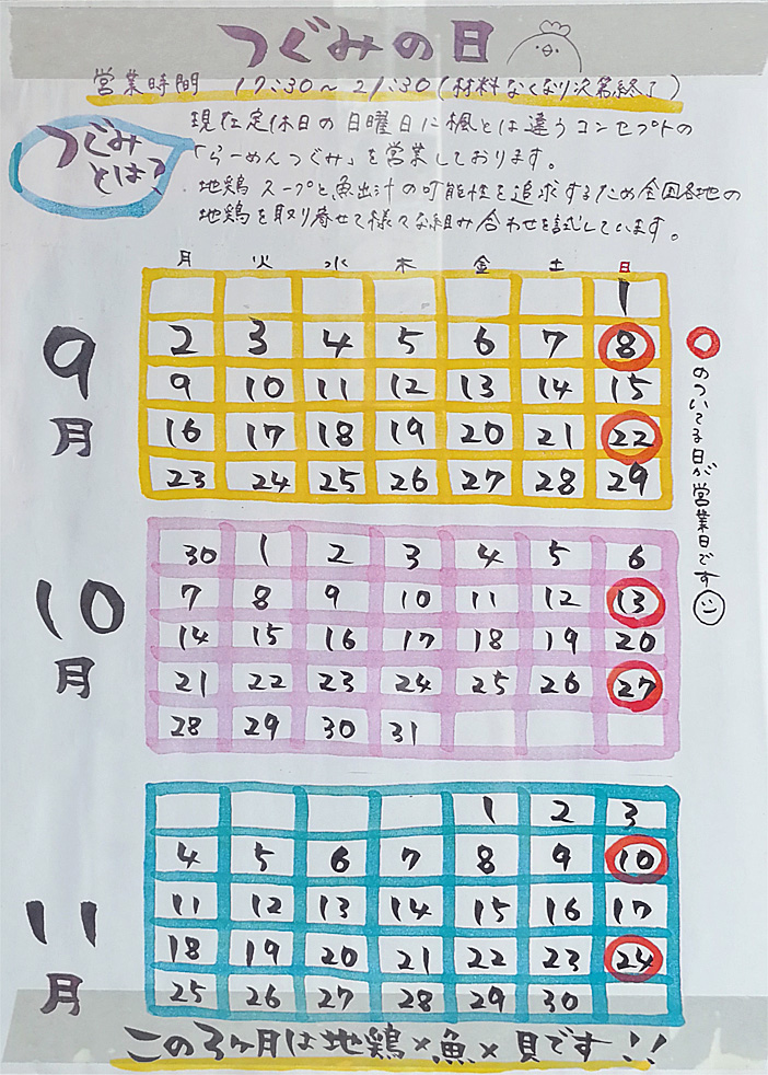 本来つぐみは日曜開催ですが、昨日は台風の影響で杯数が出なかったようで、今日も4~50杯提供出来るそうなので訪問です。