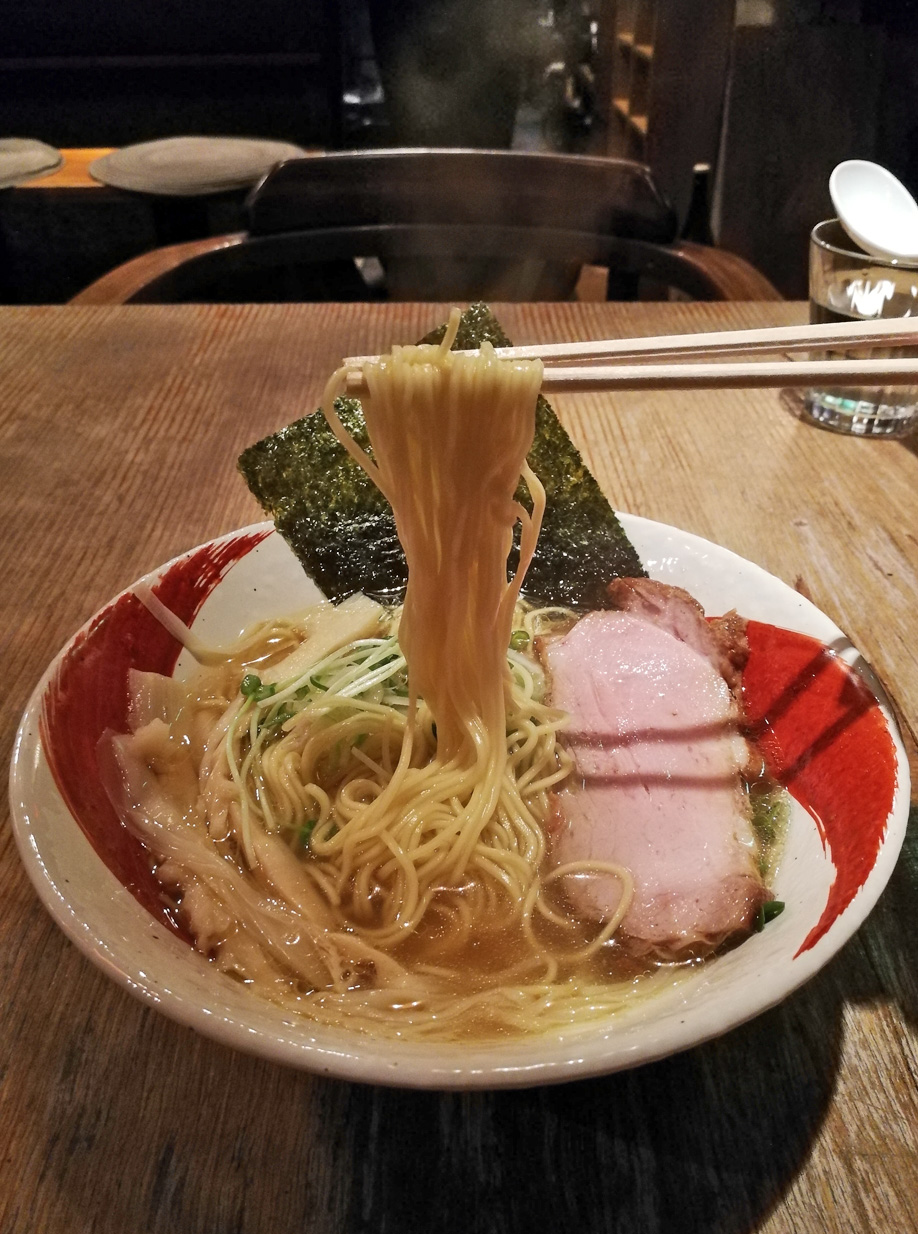 醤油ラーメンは、丸鶏と使った清湯スープに白醤油だれを合わせた透明感のあるあっさりスープです。