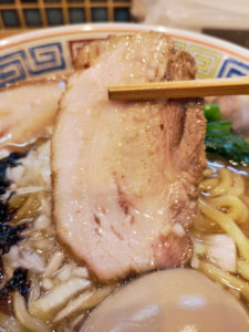 チャーシューは脂身の乗ったバラチャーシュー。厚みがあって弾力があります。噛むたびに旨味が溢れ出して激旨です♪