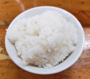 麺を食べ終わると、スープをご飯に合わせて頂きます。