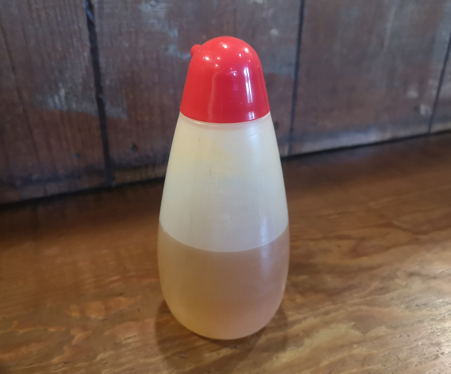 薄かったらタレを足してくださいとボトルも提供して下さいました。タレとおっしゃっていたので、お酢ではなく、色からして塩ダレでしょうか。