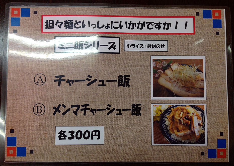 こちらも前回訪問時にはなかったサイドメニューの「ミニ飯シリーズ」(各300円)。