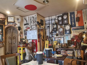 店内は至る所にレトロな雑貨が飾られていて、独特の雰囲気を醸し出していました。こういう時期なのでテイクアウトもあるのですが、某ラーメン店主が、”店内で食べた方が良いよ。”とおっしゃっていた意味が分かるような気がします。