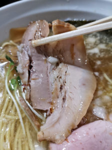 チャーシューは2種類、ロースとバラが乗ってきます。バラチャシューはお箸で持ち上がらないほどにホロホロです。