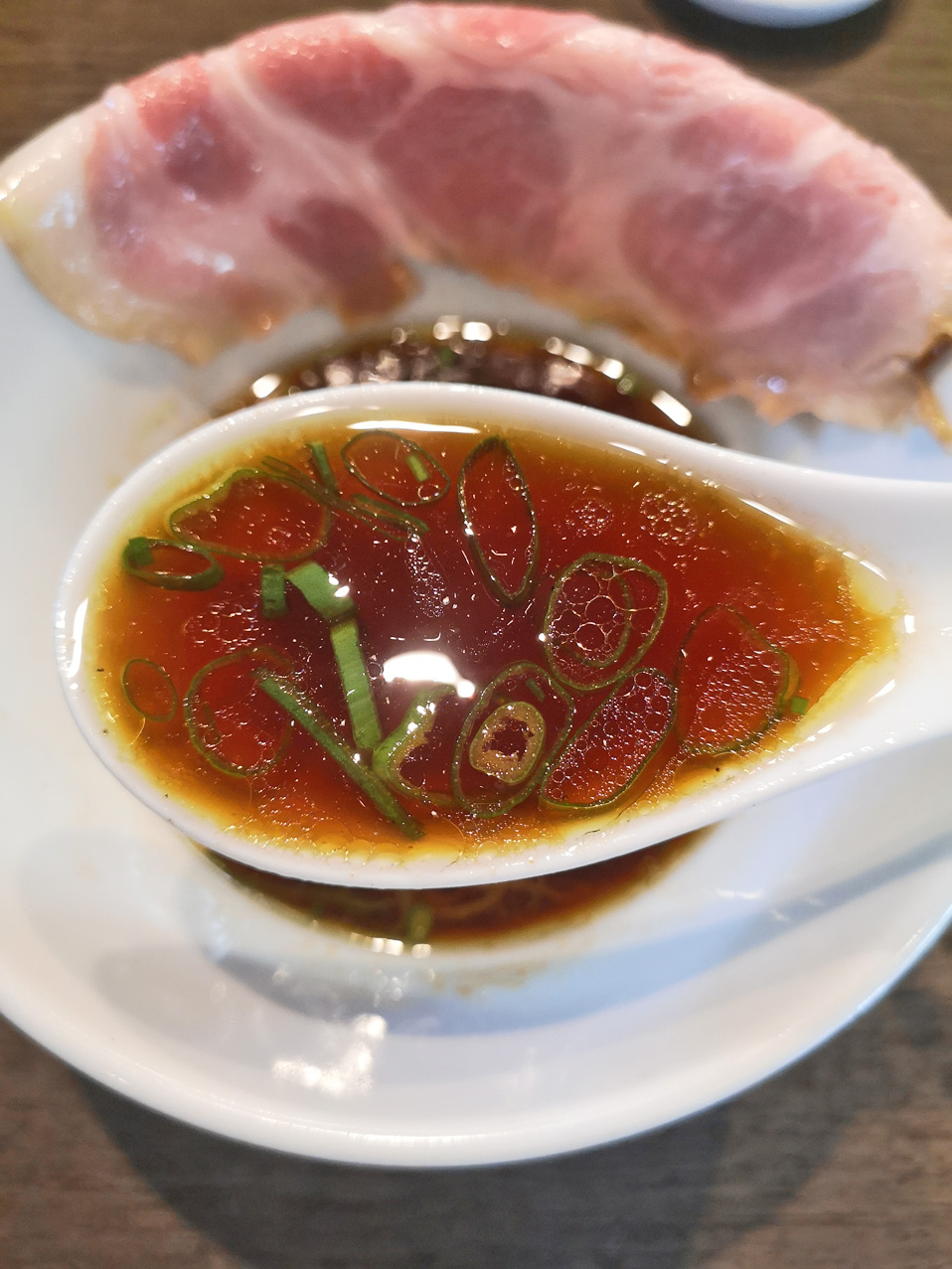 調子に乗って食べて居ると、スープを使わない内に麺が無くなってしまいそうなので、慌ててスープに麺を浸して頂きます。