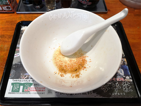 途中で、いつものように激辛壺ニラを投入して味変しながら完食です。