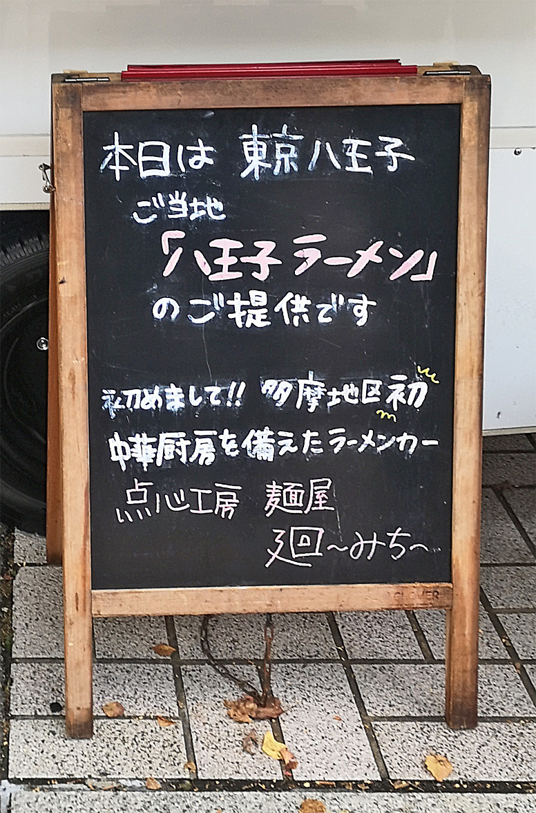 今日は八王子の南大沢駅前通りに「キッチンカー 麺屋 廻~みち~」が来るというので、食べに行って来ました。