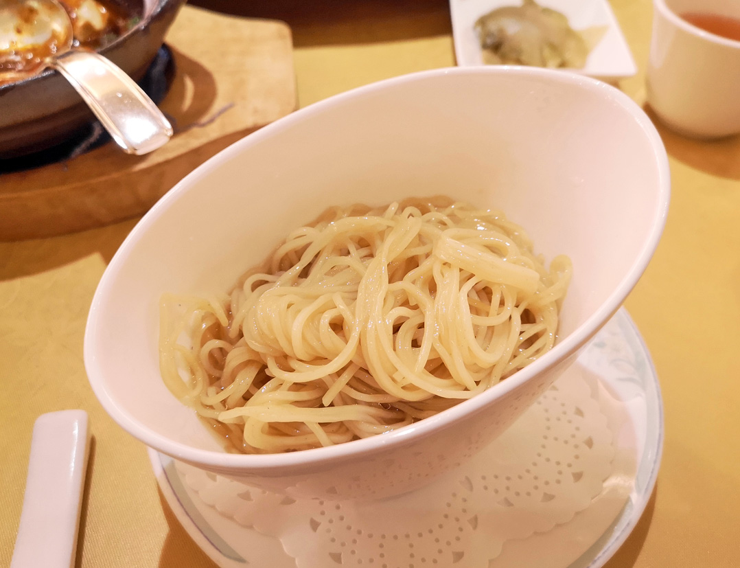 麺は、あっさりスープに浸してあります。バターのような風味のある上品な味わいです。