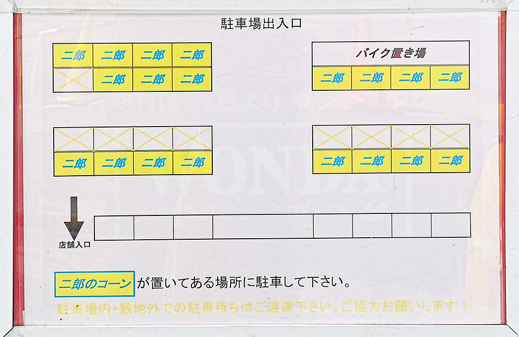駐車場は、店舗裏手にあります。”駐車待ち”は厳禁です。