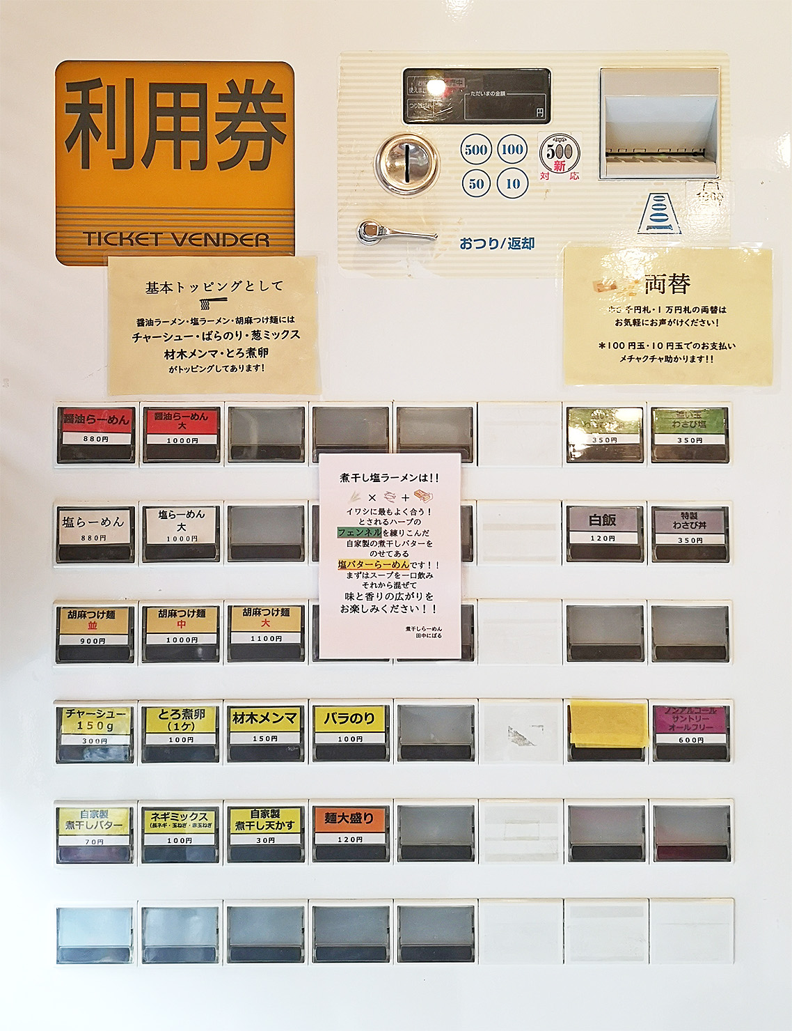 備考:八王子の圓で5年間修業した最後のお弟子さんのお店。満席の場合は、食券先買いです。