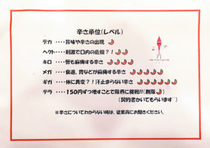 ちなみに辛さレベルは、デカ⇒ヘクト⇒キロ⇒メガ⇒ギガ⇒テラ、です。