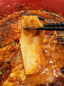 本来、果物や野菜をふんだんに使用して甘みの強いスープなのですが、そういった部類に味は影を潜めて、ただただ辛い。