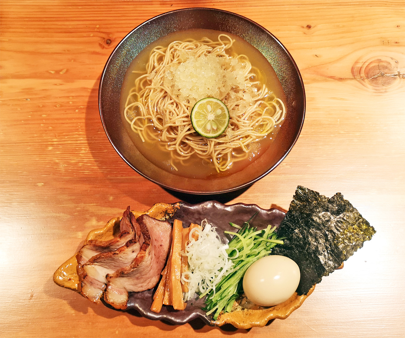 スープは、脂を抜いた鶏と鯖、宗田節の和風出汁です。ほんのりと酸味があります。