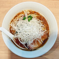 少し迷いましたが、サイドの「紀州鴨肉みそ丼」を注文しているので、麺量は200gにとどめておきました。