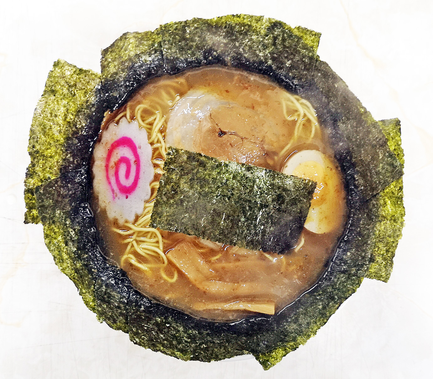 具は、チャーシュー、メンマ、のり、味玉、ナルト、刻み玉ネギ、です。