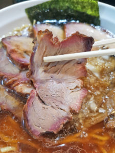 今回のラーメンの目玉。”炭焼チャーシュー”は、こんがりと焼かれています。