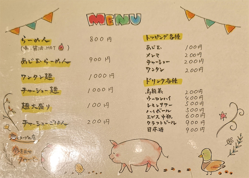 土日は、jing氏による、「らぁ麺 鶏と鳴く。」という別の店舗が営業されています。