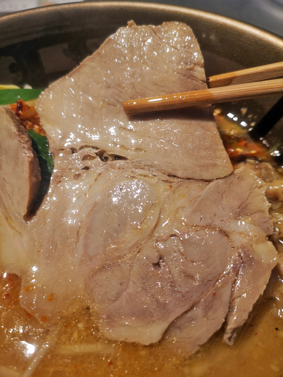 チャーシューは、厚みのある大判で、肉肉しい迫力の食べ応え!
