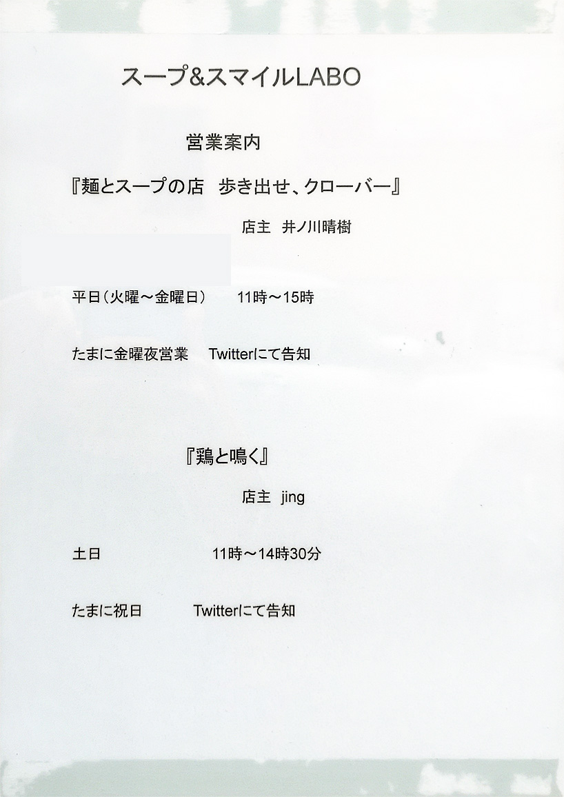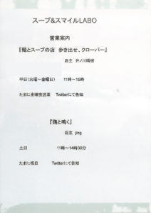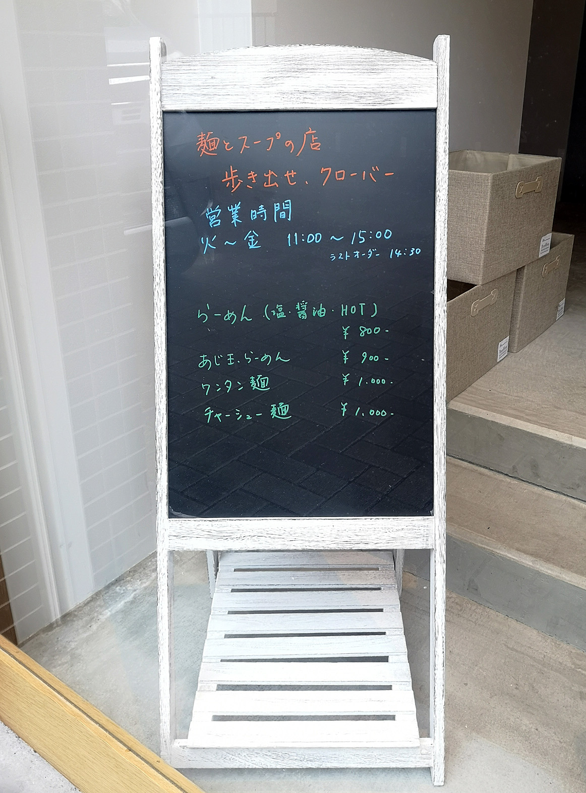 ちなみに「麺とスープの店 歩き出せ、クローバー」は平日の昼のみ営業です。