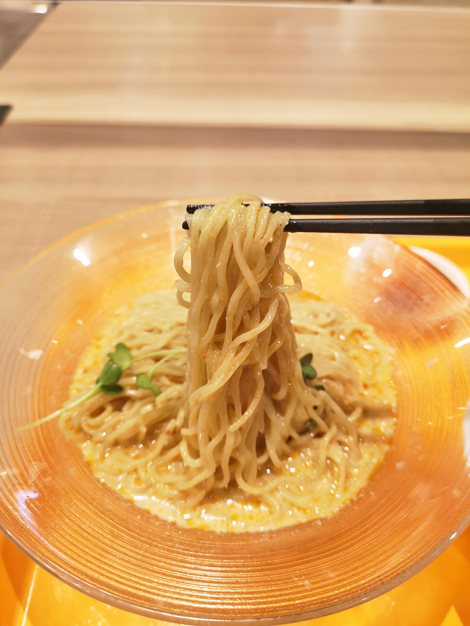 「冷やし担々麺」は、女性のお客さんを意識した作りだそうで(店員さん談)、男性だとボリューム的に物足りなさがあるかも知れません。
