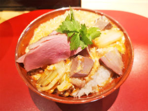 チャーシューは、スライスした鴨チャーシューと、角切りのものと2種類載っています。