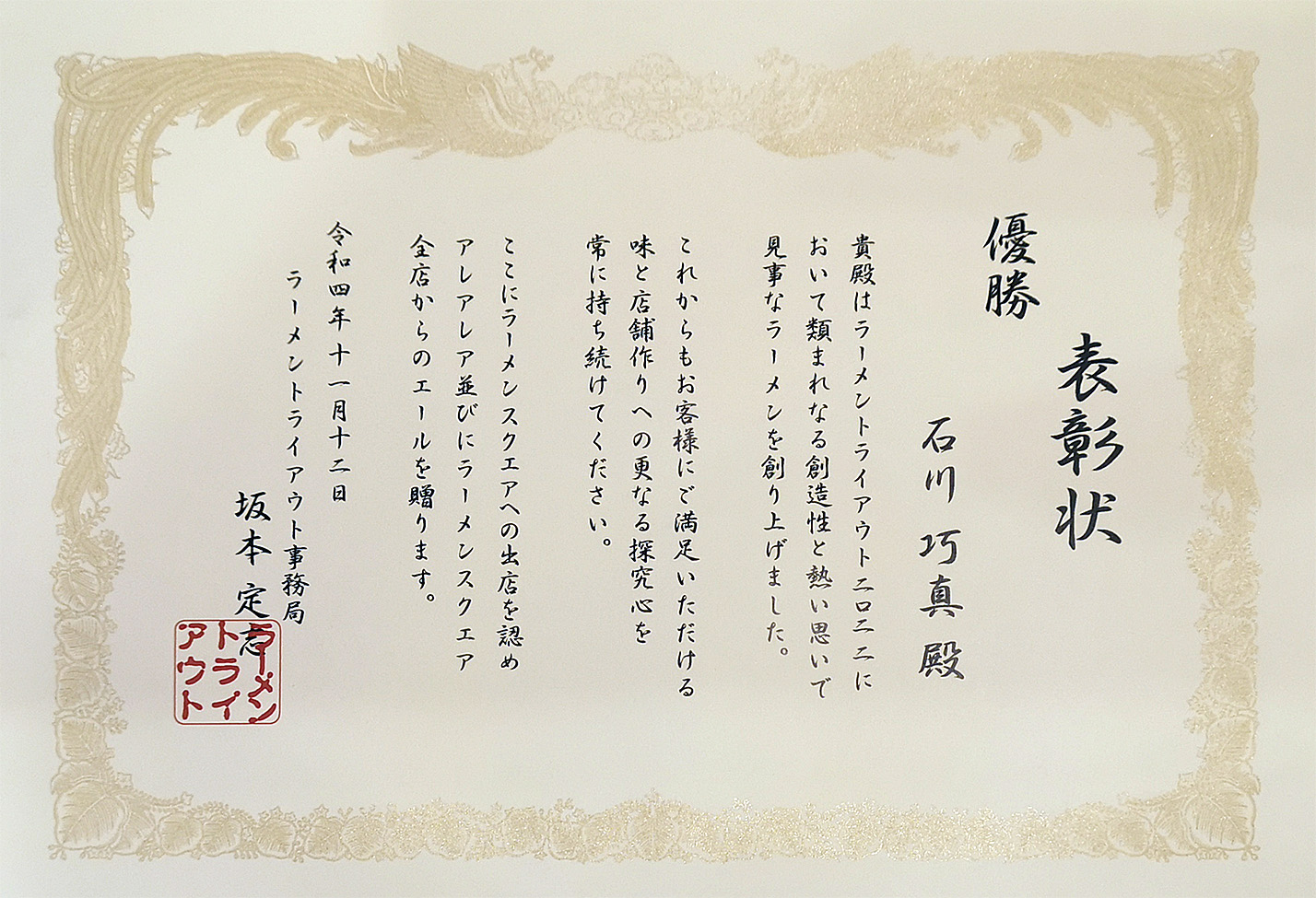 ところで、先日行われた「ラーメントライアウト2022」に見事優勝されたとのことで、お祝いを言おうと思ったのですが・・・