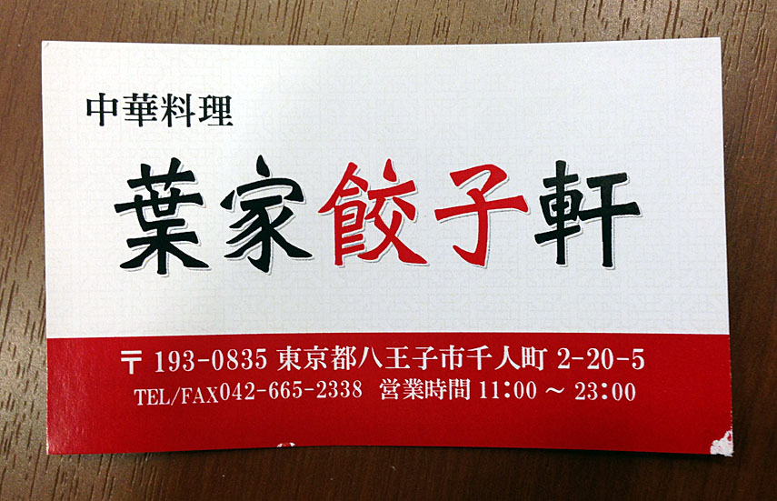 店名:中華料理 葉家餃子軒(ハイエギョウザケン)