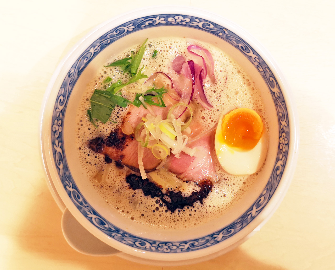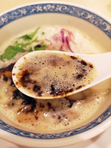 鶏白湯、味噌鶏白湯と来たので、今回は「ポルチーニ泡鶏白湯」を、ダイブめしとのセットで頂きます。