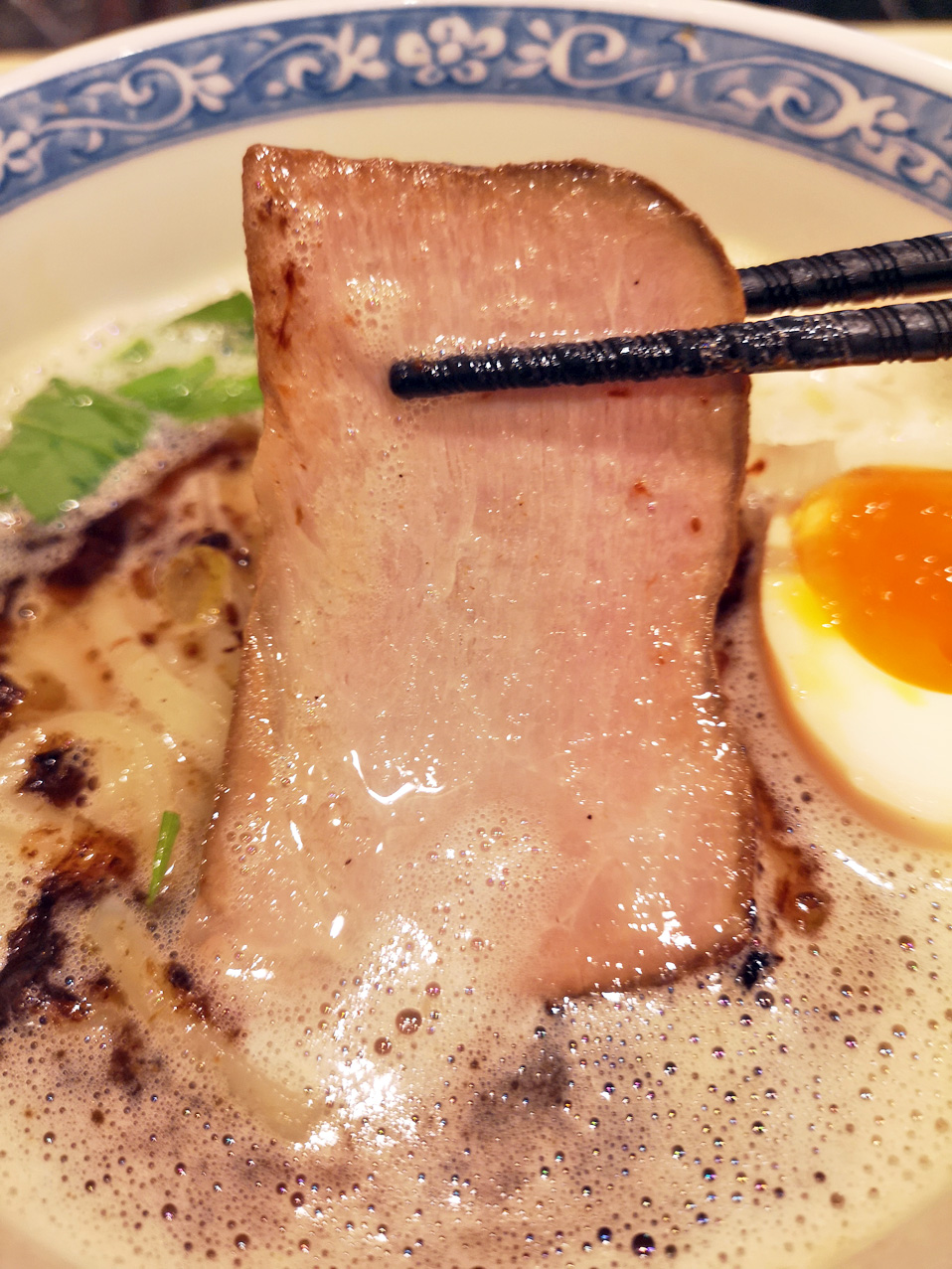 具は、チャーシュー、味玉(半分)、アーリーレッド、水菜、ネギ、です。
