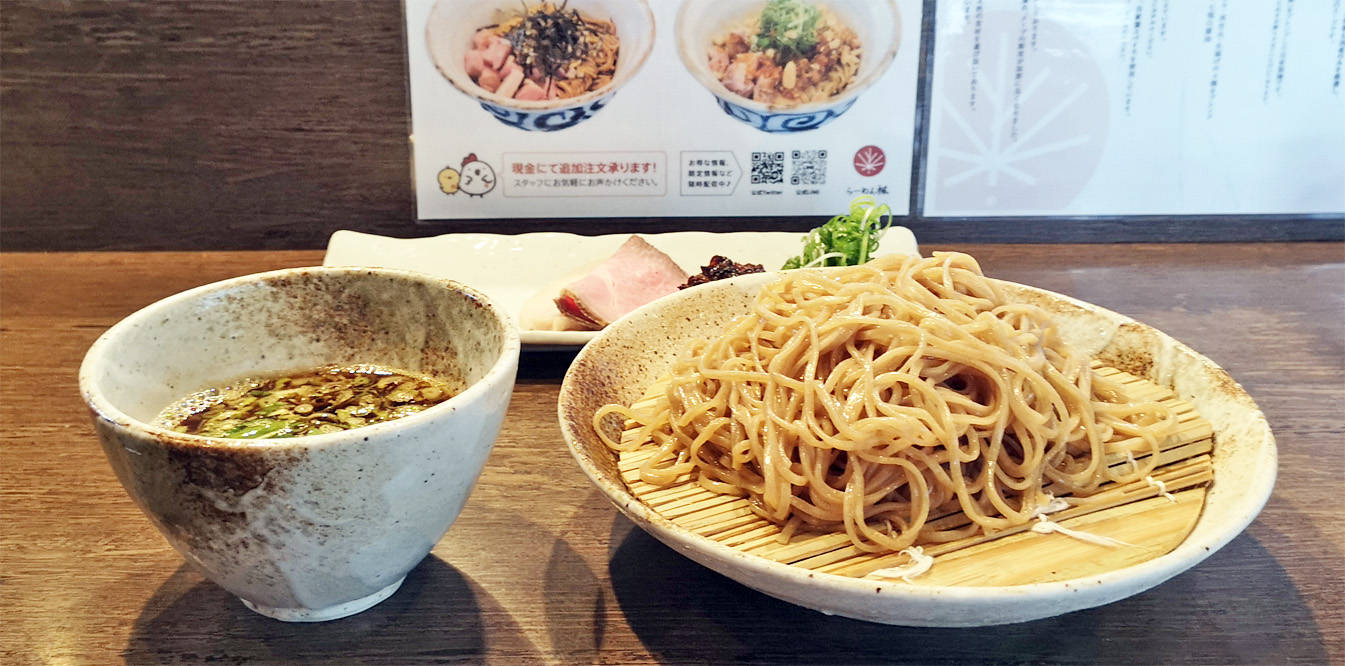 つけ汁は、鰹だしと地鶏スープをブレンドしています。