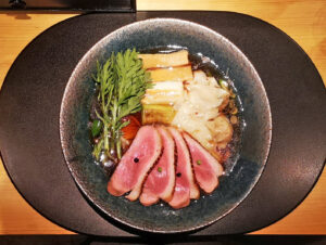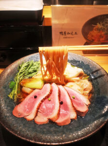 ちなみに「特撰紀州鴨中華そば」と「鴨だし中華そば」の大きな違いは、簡単にいえば、”鴨チャーシュー”が乗るか、”豚チャーシュー”が乗るかの違いです。