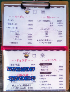 ジャンル:中華そば、スパイス麻婆カレー、餃子、など