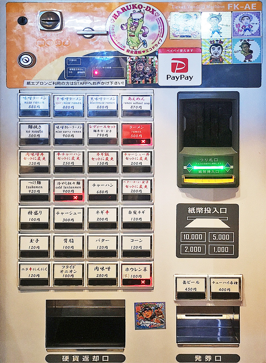 食券を渡す際に、ライス(おかわり自由)、麺大盛り、もやし大盛りサービスの有無を訊かれます。