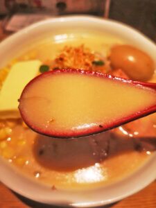 脂ぶんがたっぷりで、乳化したようなスープは、とろっとして、少しクリーミー。
