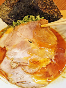 辣油が掛かったチャーシューが、兎に角おいしそうで、実際に凄く美味しい。