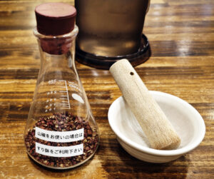 すり鉢で、一心不乱に黙々と山椒を擦る姿は、なかなかシュールだったと思います。