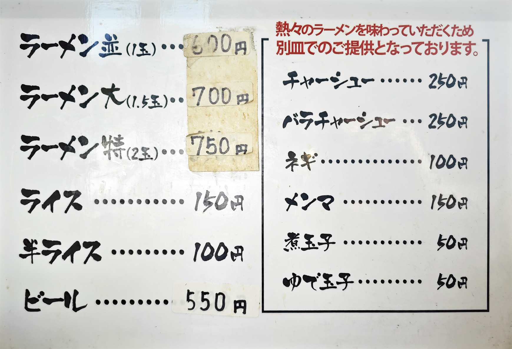 備考:みんみんラーメン出身。八王子市松木30-13-2-103より移転。煮玉子がある。ゆで玉子は殻付。
