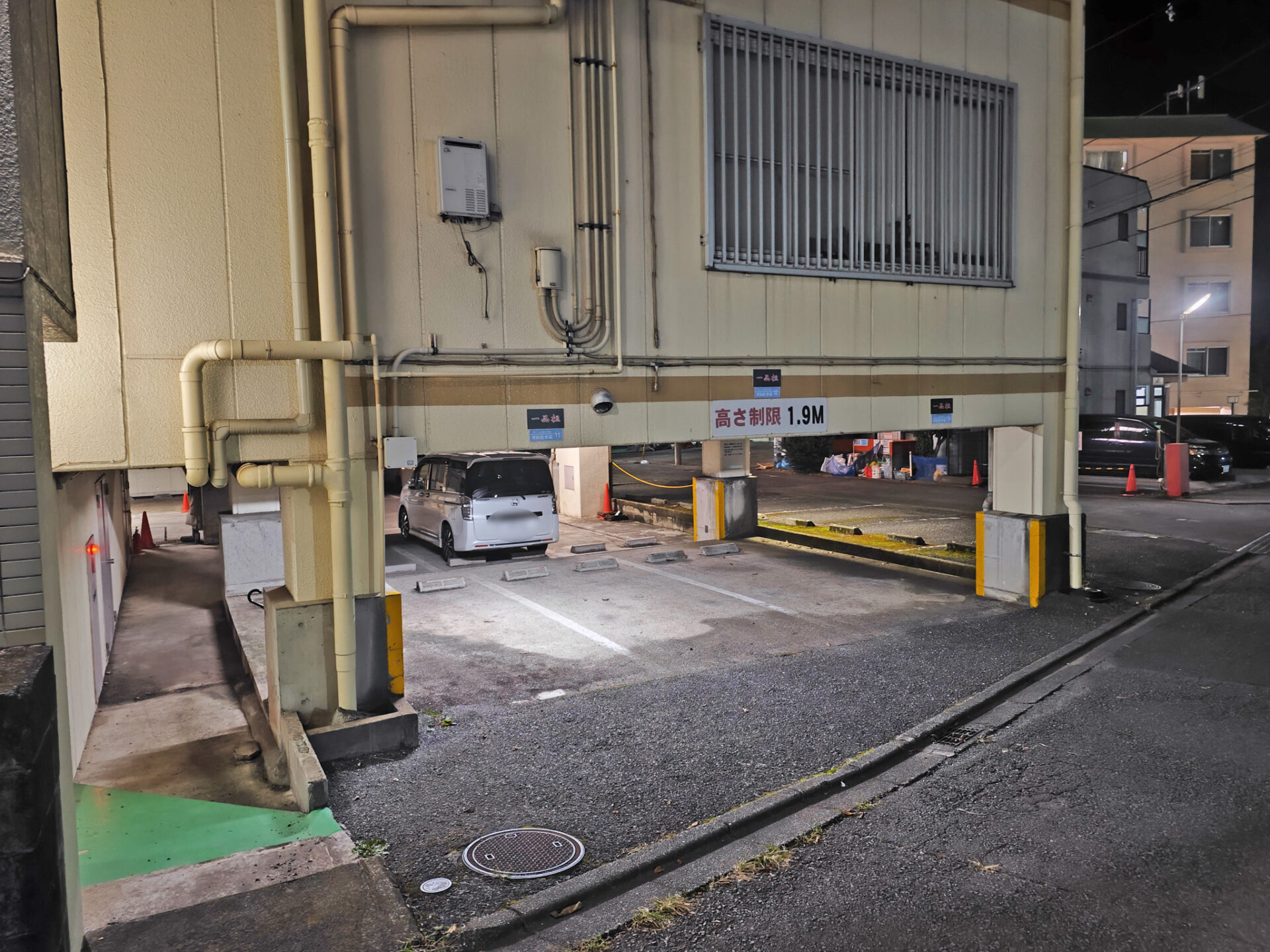 駐車場は、店舗から坂を10mぐらい下ったところの小道を入ったところに3台分あります。
