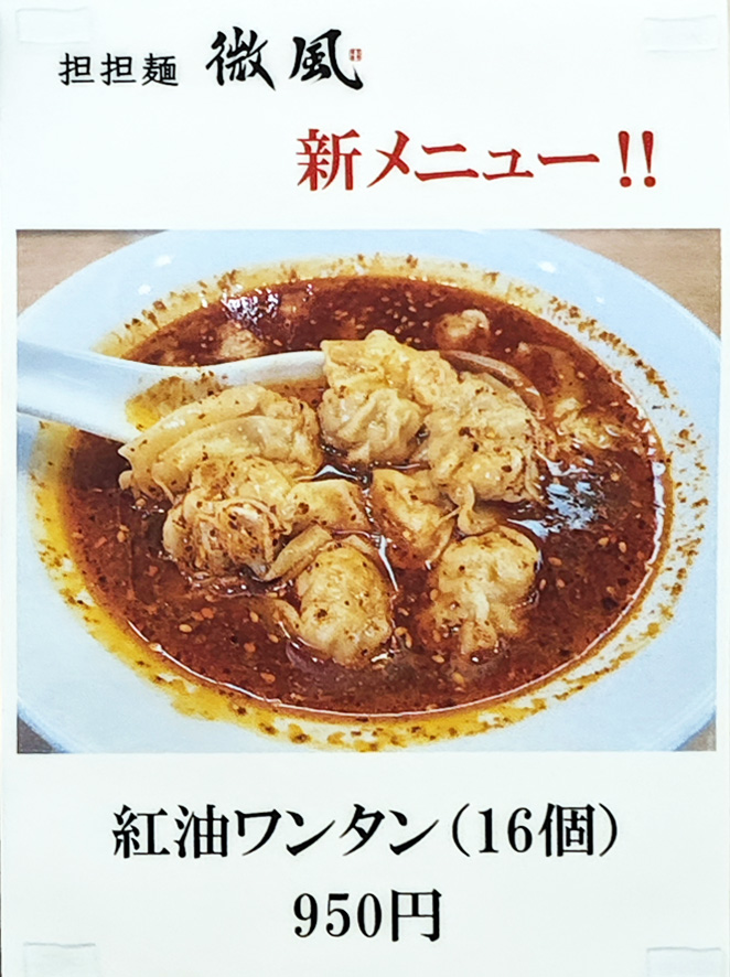 前回、間抜けなことに、新メニューの”ワンタンスープ”を”ワンタンメン”と思い込んで注文してしまいました。
