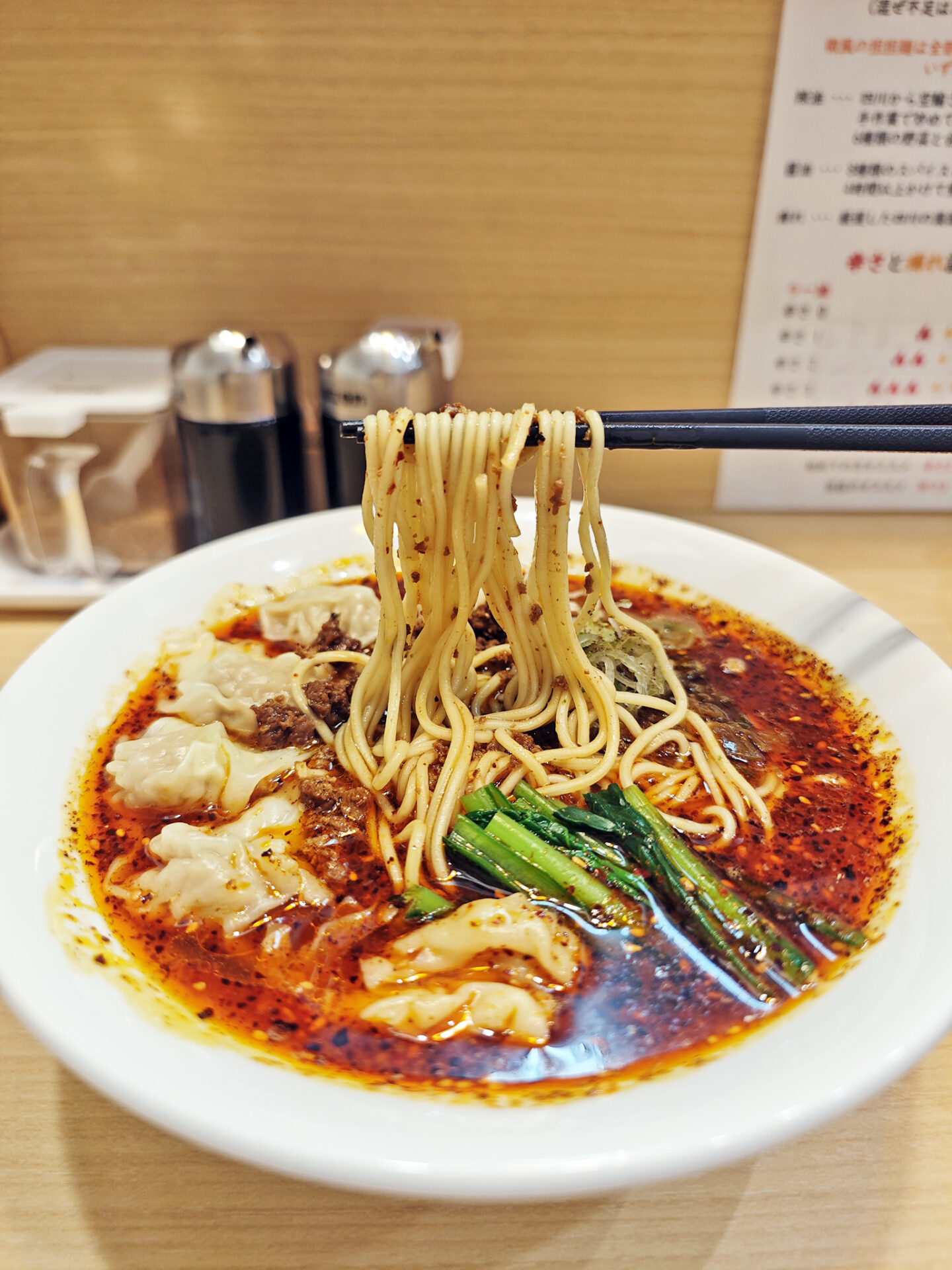 ワンタンは、表面がツルツルっとしていて、喉越しが爽快です。