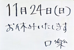 明日11月24日は臨時休業です。