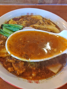 スープは、スパイスが効いていますが、尖がった感じはなく、万人受けしそうなバランスの良い作りです。