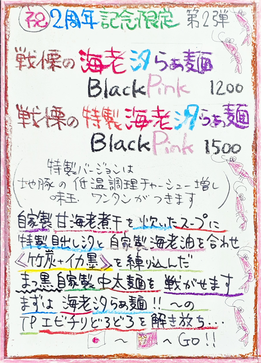 第2弾は「戦慄の海老汐らぁ麺BlackPink」です。