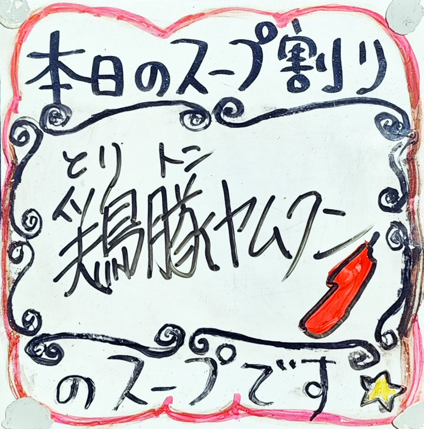 本日のスープは、「鶏豚ヤムクン」