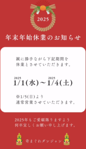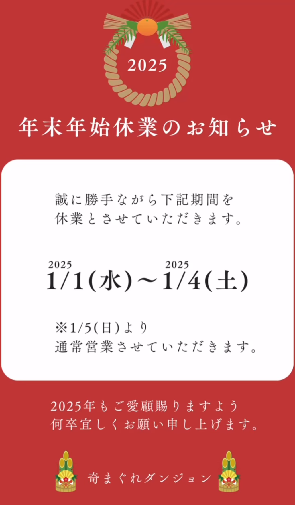 ちなみに、年内は12月31日(火)まで、年始は1月5日(日)から営業されるようです。